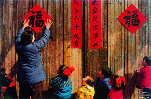 ? ? ? 而貼春聯(lián)也是過(guò)年必不可少的呢,每逢春節(jié),無(wú)論城市還是農(nóng)村,家家戶(hù)戶(hù)都要精選一幅大紅春聯(lián)貼于門(mén)上,為節(jié)日增加喜慶氣氛。
