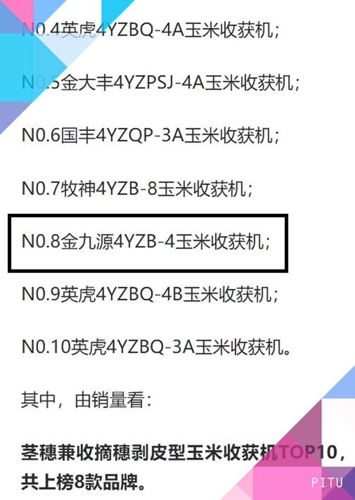 ? ? 據(jù)權(quán)威機(jī)構(gòu)統(tǒng)計(jì),2020年度中國(guó)莖穗兼收機(jī)銷量排行榜“金九源”榜上有名